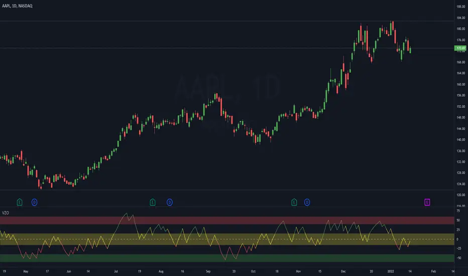 Whilst the VZO is already smoothed with an exponential moving average, the indicator settings include an additional 'smoothing' function to remove any excess 'noise' in the plots for intraday use.