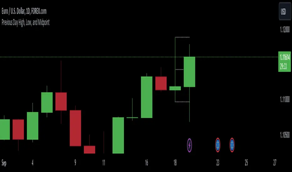 shows yesterdays high low and midpoint elimainating the need to use the fib tool every day