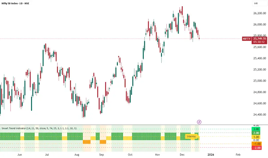 The indicator also uses a candle stick holding method to disregard and up and down moves created by volatility which would be a false indication on the chart.