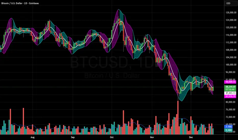 This gives a visual map of volatility shifts, similar in concept to Bollinger squeezes, but much smoother and more reactive.