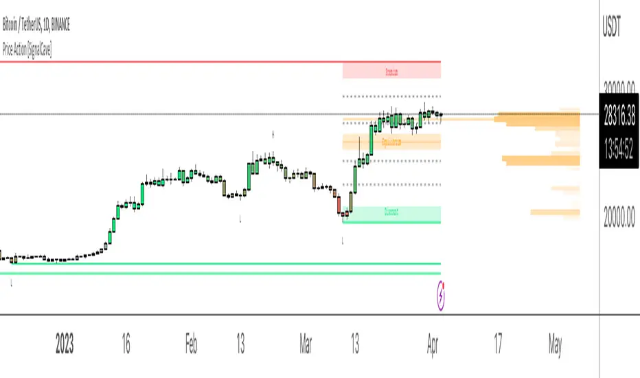 Volume profile shows trade activity during the "Premium and Discount" zone.