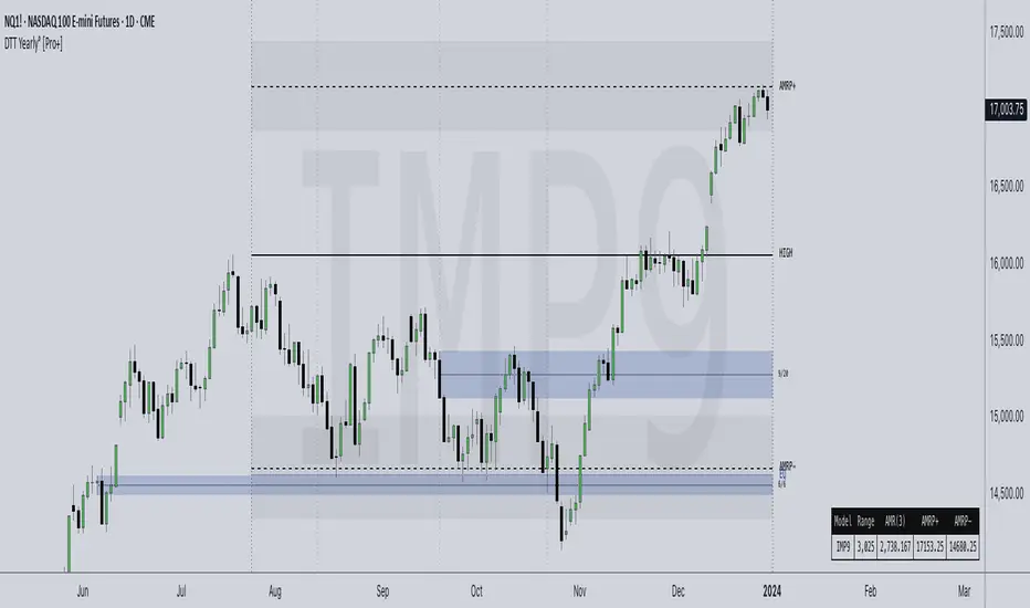 Measure the average volatility expected over higher Time-based models. Use AMRP Levels and Projections to assess the range potential of each Yearly Model Time window—vital for monitoring reversals, breakouts, or continuation plays across several sessions or weeks.