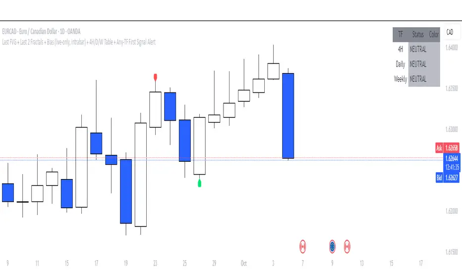 An indicator which looks at the most recent FVG and, assuming it's been respected, provides a bias flag on the 1H, 4H and Daily levels.