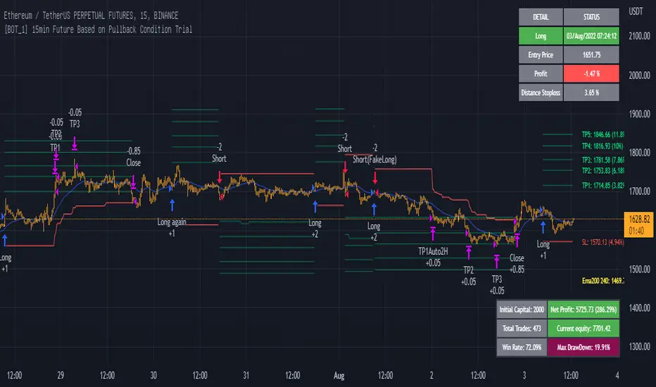 This is a swing strategy to follow the trend on the 15m frame, use the pullback condition in the smaller timeframe to enter the trade.