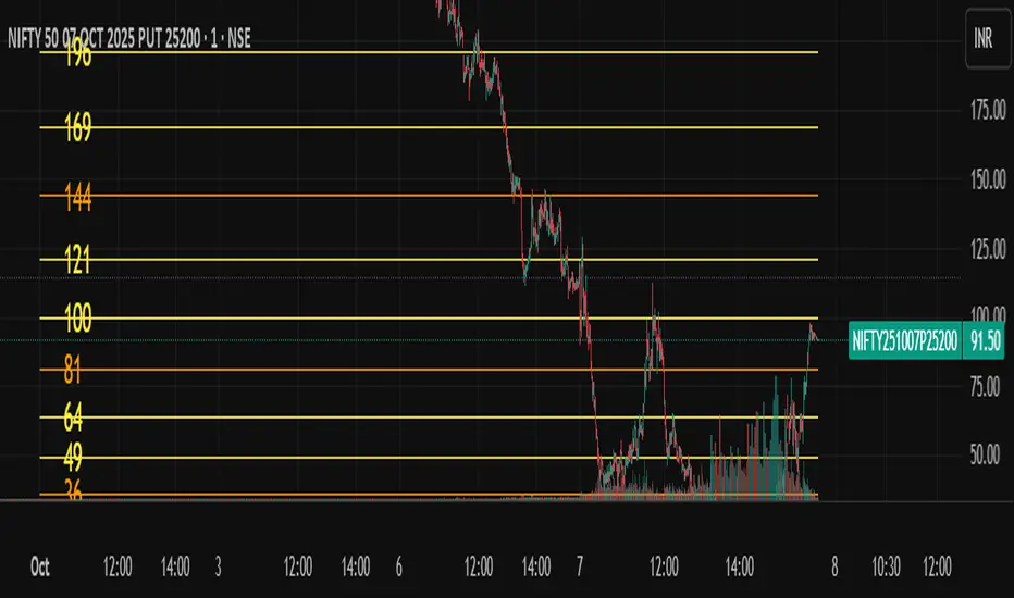 The Adaptive Square Levels (Configurable Edition) indicator dynamically plots price levels based on perfect squares — a concept derived from harmonic market behavior and geometric scaling.