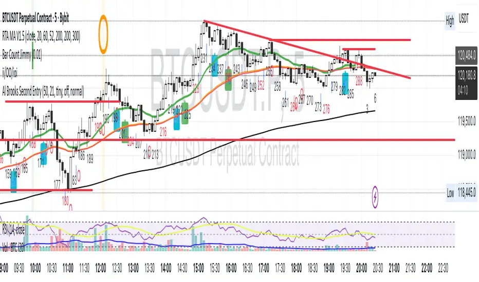 This indicator automatically identifies Al Brooks' key consecutive bar patterns that signal important market transitions. Enhanced with both **traditional (high/low)** and **body (open/close)** detection methods for more accurate signals.