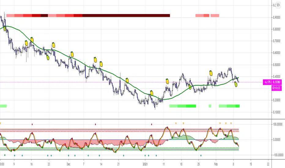 Oscillator line crosses will trigger a signal and are colored in the respective direction for clarity.