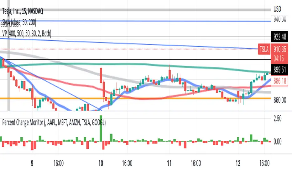 SP 500 Trend Identifier, looks at top 5 SP500 stocks and shows performance of these 5 combined stocks for the day. Are they going up or down, TSLA< AAPL< MSFT<GOOGL<AMZN