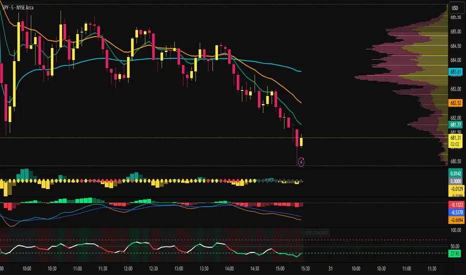 This overlay combines VWAP, 8/21 EMAs, Bollinger Bands, and Keltner Channels to visualize short-term momentum, trend structure, and volatility compression directly on your chart.