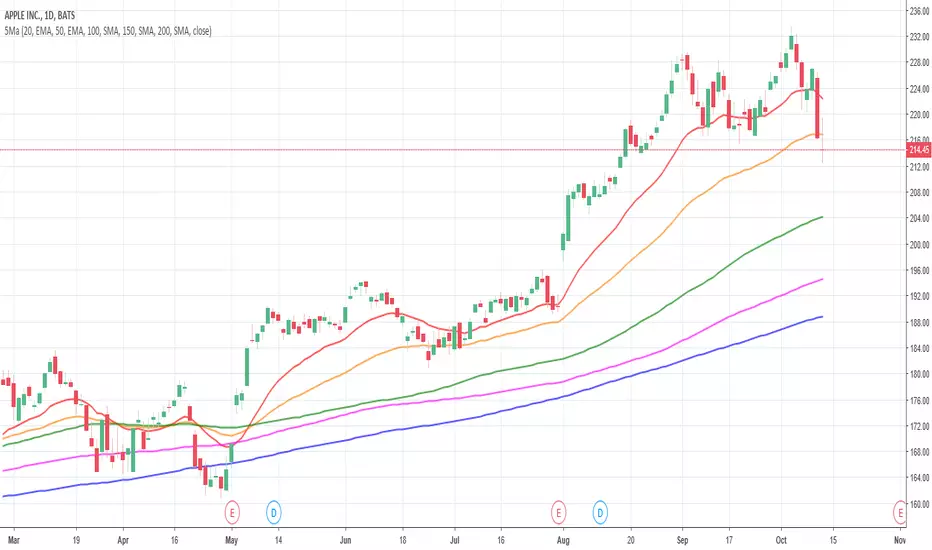 5 moving averages in 1 indicator. Choose between SMA and EMA for each moving average.