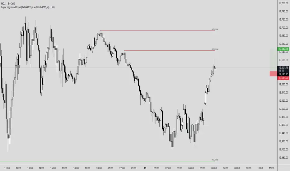 The "Equal Highs and Lows {Reh's and Rel's}" indicator is designed to identify and mark equal highs and lows on a price chart. It detects both exact and relative equal levels, draws lines connecting these levels, and optionally labels them. This tool can help traders identify potential support and resistance zones based on historical price levels.