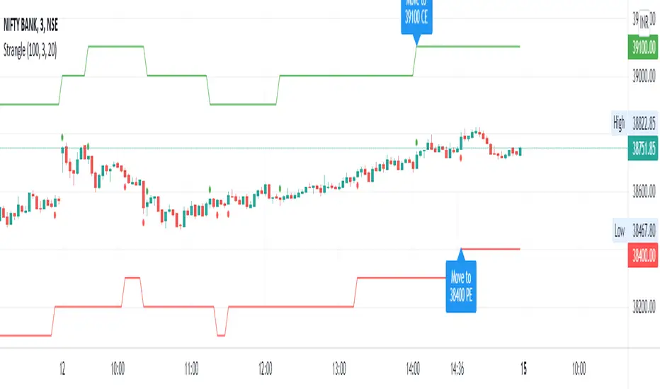 Second is strangle distance multiply, user can choose the distance from the trend price. For example, nifty user selects 3, strangle line starts showing (3*50) 150 points away strike from the trend area.