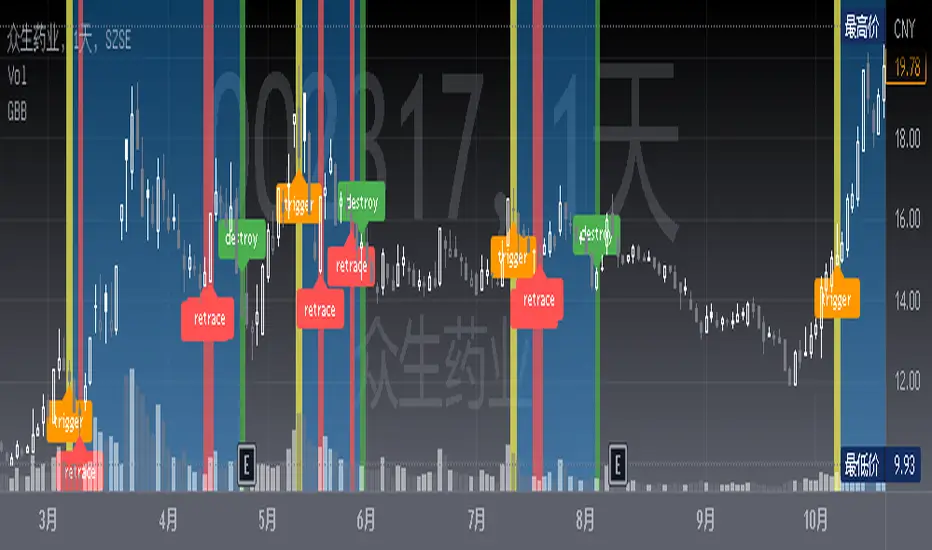 3. green bgcolor indicates a destroy or end of a bullish swing