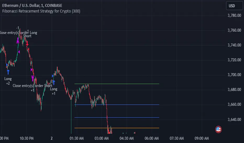 The Enhanced Fibonacci Retracement Strategy is designed to help traders capitalize on key Fibonacci levels for both long and short trades. This script automatically identifies significant swing highs and lows within a customizable lookback period and dynamically plots Fibonacci retracement levels (0%, 23.6%, 38.2%, 50%, 61.8%, 78.6%, and 100%) as support and resistance levels.