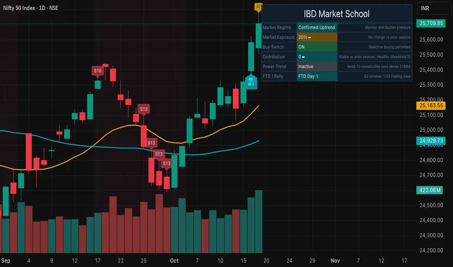 - Institutional-grade implementation of William O’Neil’s Market School timing system tuned for global and Indian benchmarks. Tracks corrections, rally attempts, follow-through days, power trends,