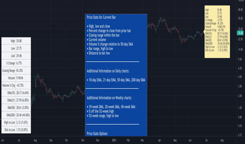 Price Stats is an indicator based on the statistics shown in MarketSmith charting software when viewing the Track Price information, also known as the "yellow box."