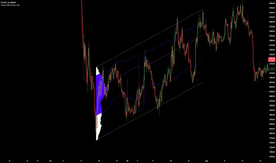 Volume Profile Channel +, Is the first of its kind tool that will plot a volume profile in any directional channel, the tool will calculate a profile and display the following, POC/VAH/VAL.