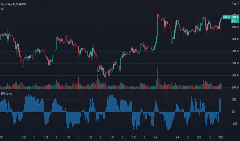 This takes an RSI Stochastic and a regular RSI and shows the difference between them. Do not use this indicator alone.