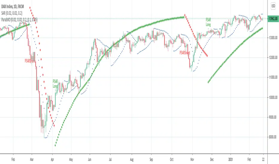 - xo controls the percentage amount added or substracted to the last Parabolic SAR value in order to allow a change in direction in the indicator.