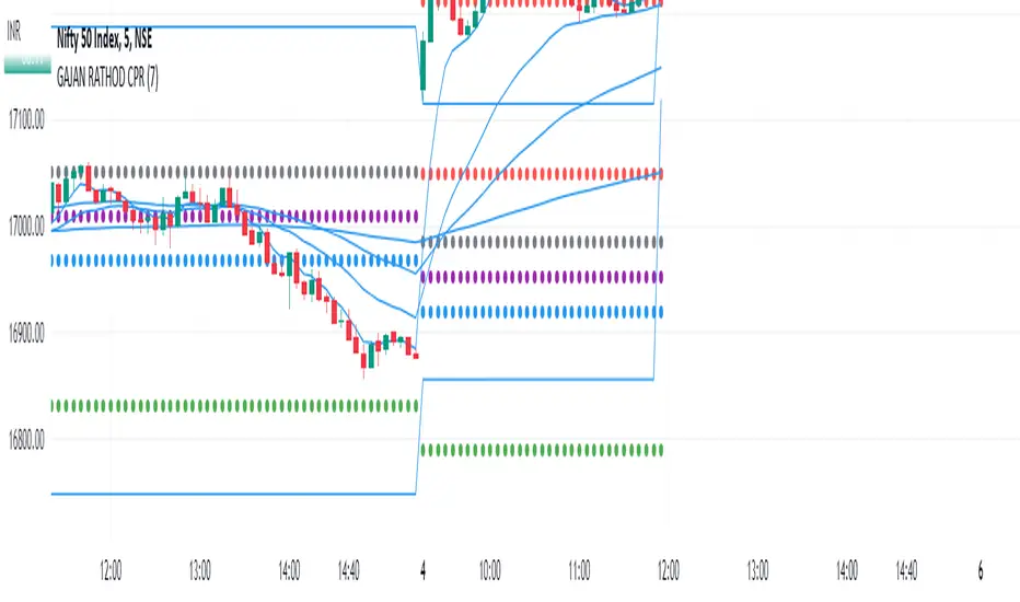 This is purely an Intraday strategy. 5 ema is used for scalping , while 20 ema is for short term trading, 50 ema is for mid term while 200 ema is used for long term trading. Also, 15 min high and low is market. If candle closes above 15 min high then BUY or candle closes below 15 min low then sell. The pivot levels which are the CPR levels that is central pivot range has and additional pivots that is of weekly and monthly which will be of huge benefit for Intraday traders.Скрипт с открытым кодом