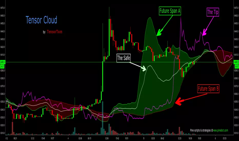 Introducing the Tensor Cloud. This is probably the best indicator I've come up with so far. I'm really proud of it. Ichimoku is a brilliant system. It's been around for over half a century and I praise Goichi Hosoda for his brilliant work. However, it's time for something new. I love math and this indicator really showcases that. The Tensor Cloud is an indicator of its own. It is not related to Ichimoku at all. The only thing they have in common is that they both form clouds. The maths in Tensor Cloud are 100% apart.