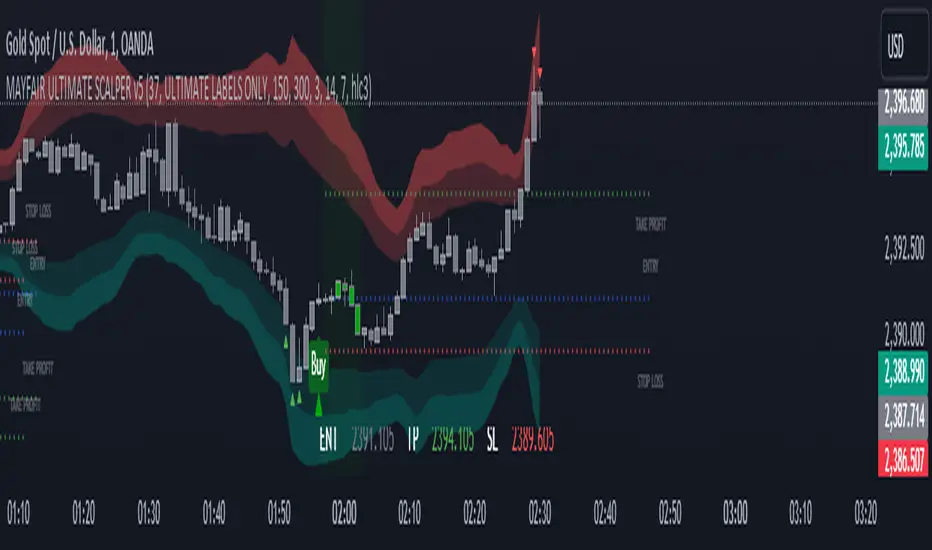 - Smart, automated Take Profit (TP) and Stop Loss (SL) calculations directly into your trading strategy. TP and SL values print on only the ULTIMATE BUY and SELL conditions (when all confluences hit).