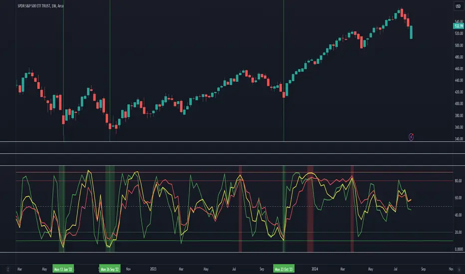 - Green background when all three indicators are under 20%, indicating a potential oversold market condition.