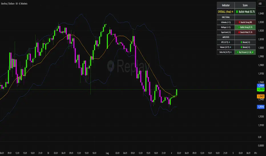 When you see the ⚡ symbol next to the final overall score, it means market conditions (volatility, volume, and buying/selling pressure) are confirming and strengthening the directional bias.