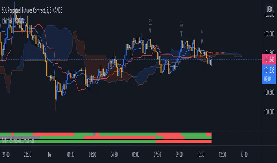 Ichimoku Kinko Hyo is a technical analysis method that builds on candlestick charting to improve the accuracy of forecast price moves and Crossing TenkanSen ((HH + LL)/2 for the last 9 periods) & KijunSen (HH + LL)/2 for the last 26 periods) is One of major strategies on Ichimoku.