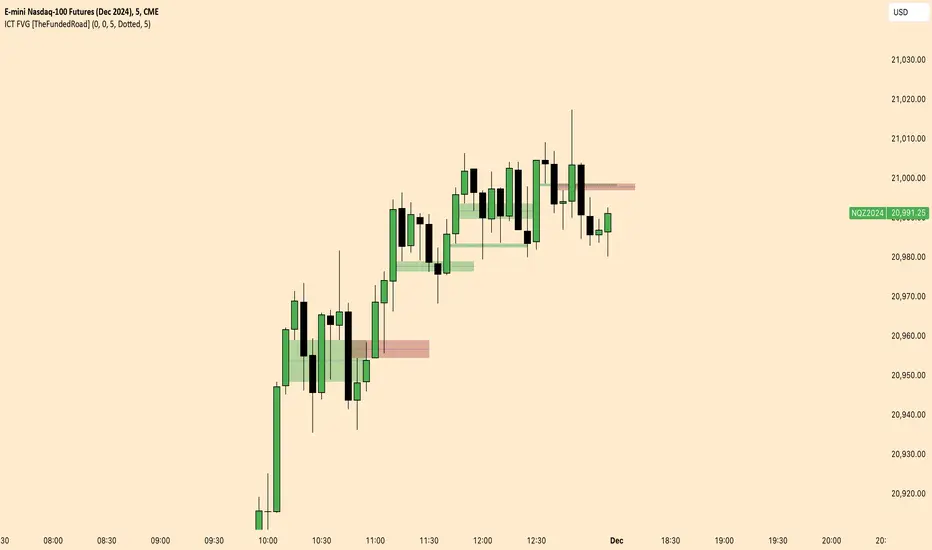 Fair value gap is a gap in a set of 3 candles, in a bullish FVG you have 1st candle high being lower than third candle low, and in a bearish FVG you have first candle low higher than third candle high, thats how this indicator finds these fair value gaps