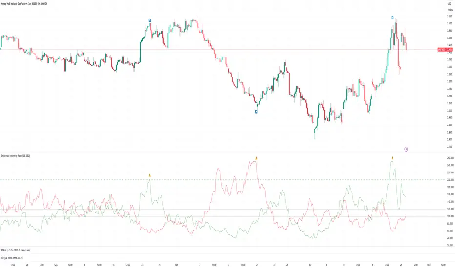 Shinohara Intensity Ratio (SIR) - the indicatorThis indicator is used to show the intensity of the trend. It shows the possible direction of the price. If the price is in an uptrend or a downtrend, the indicator tells you when to buy, sell or get out. A good example of this is the chart of natural gas, where a reversal in trend was seen a few days earlier. The Shinohara indicator indicated this a few days earlier.