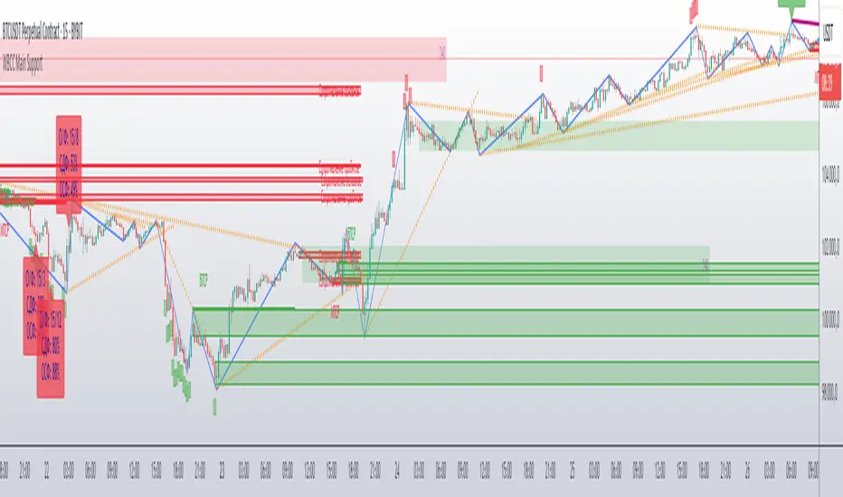2. automatically tracks and draws - Main resistance and support and market structure breakdown zones (after breakdown of which, there can be a strong movement (long or short).