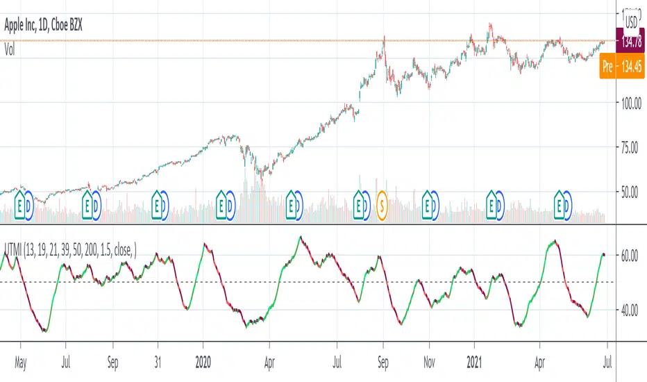 This is a custom indicator of mine loosely based on the work by Steve J Godwin & Louisa C Schneider (Stocks and Commodities Feb 2021 pg 22) and this works pretty well at anticipating future price swings as the momentum falls. The idea I was going for was to introduce the idea of reversals in combination with a momentum indicator so you can better identify peaks and valleys. I have included strong buy and signals in addition to normal ones so darker colors are the strong buy and sell signals and lighter colors are the normal ones. I would recommend to buy when the line turns green and sell when it turns red.