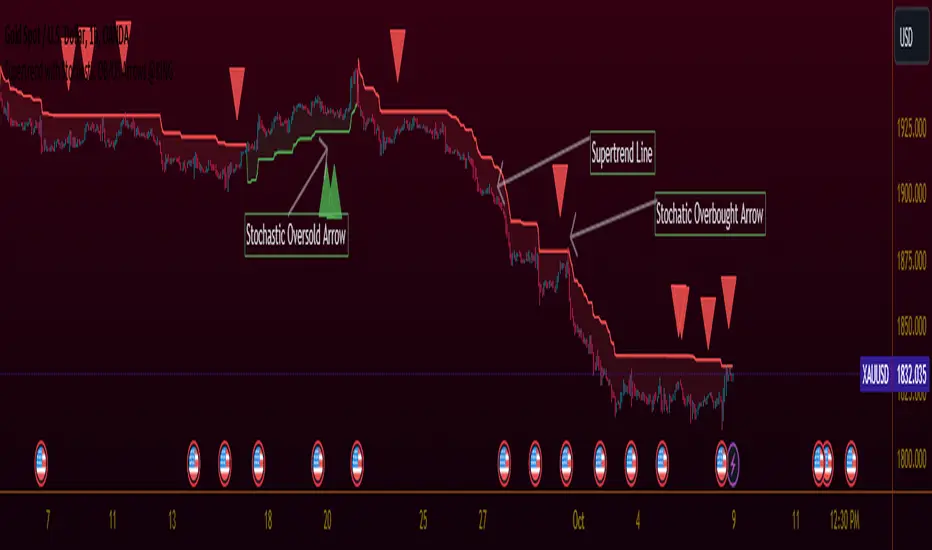 Обновлено Supertrend with Stochastic OB/OS Arrows @KING