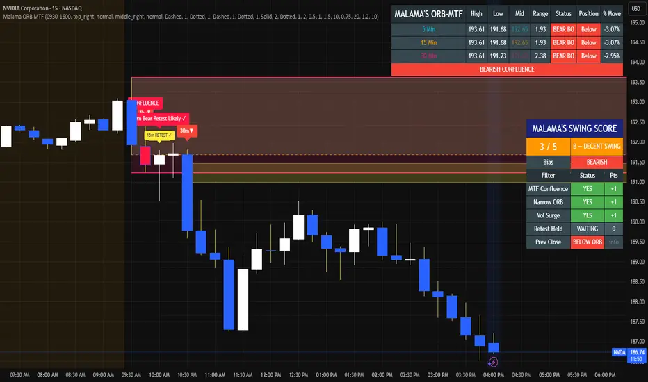 Disclaimer: Trading involves significant risk of capital loss. This tool is for educational and analytical purposes only. Malama's ORB-MTF does not guarantee profits; always backtest your strategy and manage your risk strictly.