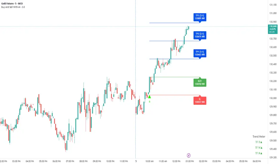 **Buy and Sell AI – 3.0** is an educational technical indicator designed to help traders structure entries, stop-loss and target planning, risk management, and multi-timeframe trend reading in one place. It does **not** place trades or guarantee profit; it simply visualizes rules you configure yourself.