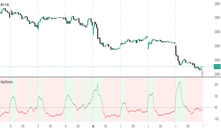 The Rolling ATR Momentum Indicator is a simple yet powerful tool designed to detect shifts in market volatility. It compares the current Average True Range (ATR) with the ATR from a previous point in time to measure how market volatility is changing.