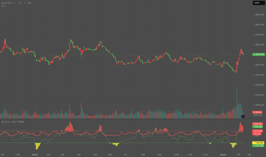 本指标是一款融合了改进型顺势指标 (CCI) 与 动态相对强弱指标 (RSI) 的复合型振荡器。它旨在通过双重动量验证,帮助交易者在复杂的市场波动中精准捕捉超买超跌信号,并识别趋势的强弱平衡点。