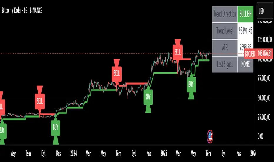 Trend Tracker Pro is a sophisticated trend-following indicator that combines the power of Exponential Moving Average (EMA) and Average True Range (ATR) to identify market trends and generate precise buy/sell signals. This indicator is designed to help traders capture trending moves while filtering out market noise.