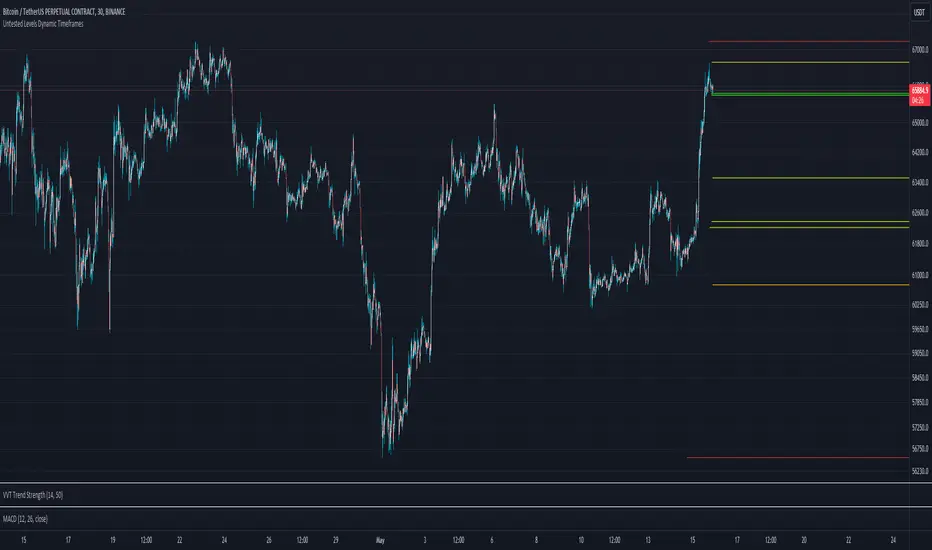 This indicator, titled "Untested Levels with Timeframes" is designed to identify and visualize price levels within different timeframes that have not been tested recently. Here's a breakdown of its benefits and usage: