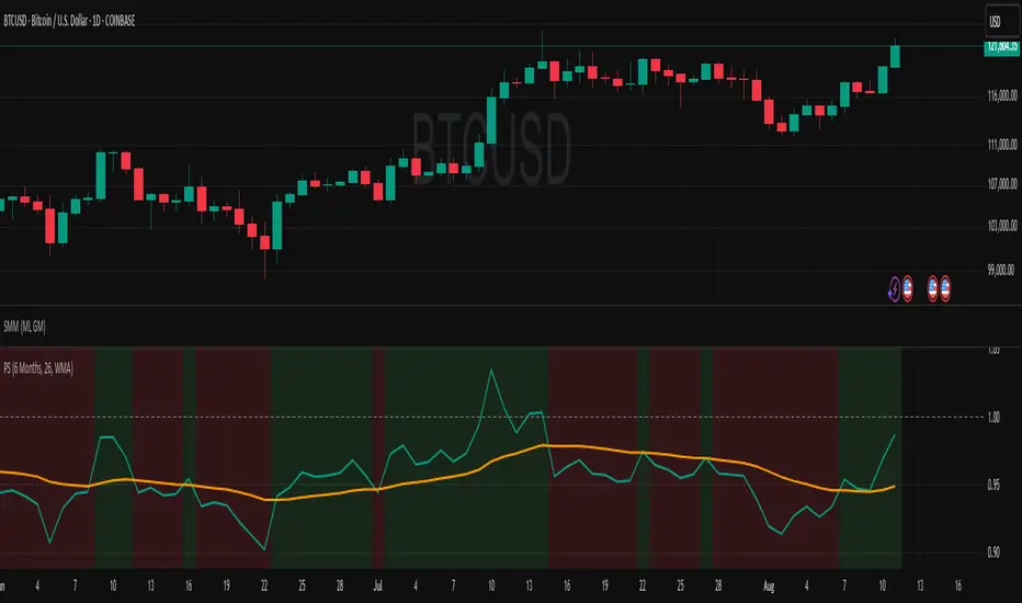 The lecturer's contribution, which this script implements, was to simplify this concept into an actionable trading tool by applying a moving average crossover to generate clear and objective buy and sell signals.