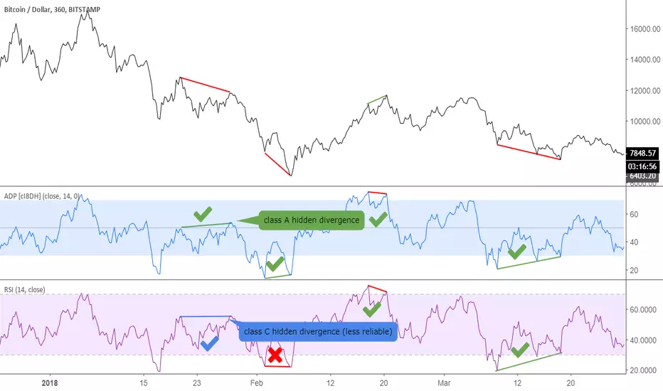 - Regular divergence shows that momentum of a trend is declining. Hidden divergence implies continuation of a trend. The non-bound mode should be more accurate for identifying divergence.