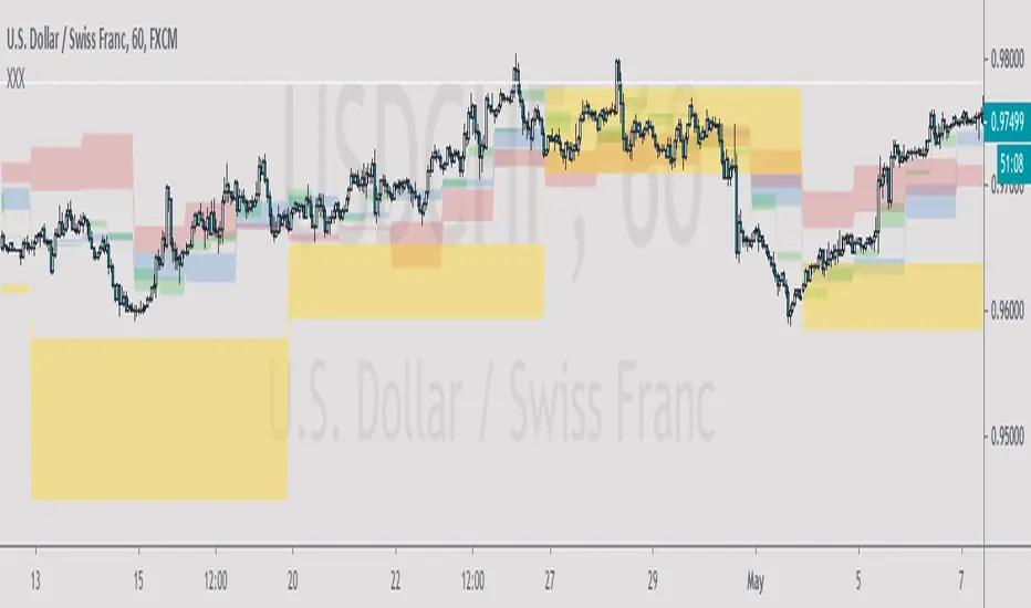 Red = 5 day rolling pivot :: collects the open/high/low/close of the last 5 days and makes a daily range with them. Best used with 50ema on the hour chart. The book used a 3 day rolling pivot but I find this more useful.