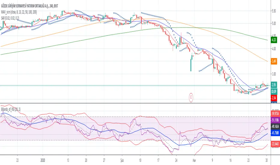 with this script you can follow ema8 of RSI and also SMA20 of RSI with ∓ 2 standart deviation