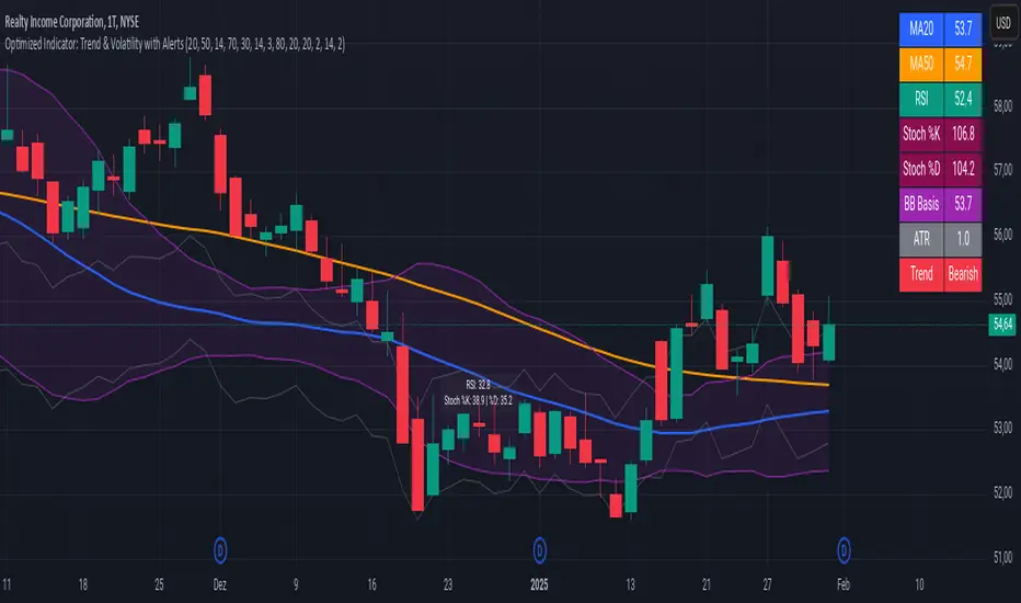 This script presents a comprehensive analytical tool that integrates multiple technical indicators to provide a holistic view of market trends and volatility. By uniquely combining Moving Averages (MA), Relative Strength Index (RSI), Stochastic Oscillator, Bollinger Bands, and Average True Range (ATR), it offers nuanced insights into price movements and helps identify potential trading opportunities.
