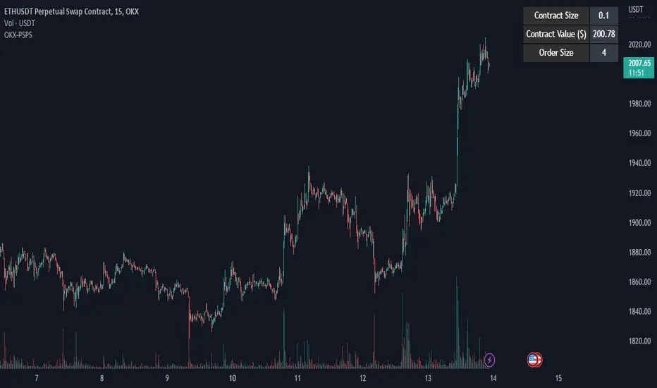 Instead of manually searching for each pair on okx.com/trade-market/info/swap and calculating the position size from dollar to contract, I developed a Python bot to scrape the necessary data and built an indicator to convert that data into TradingView.
