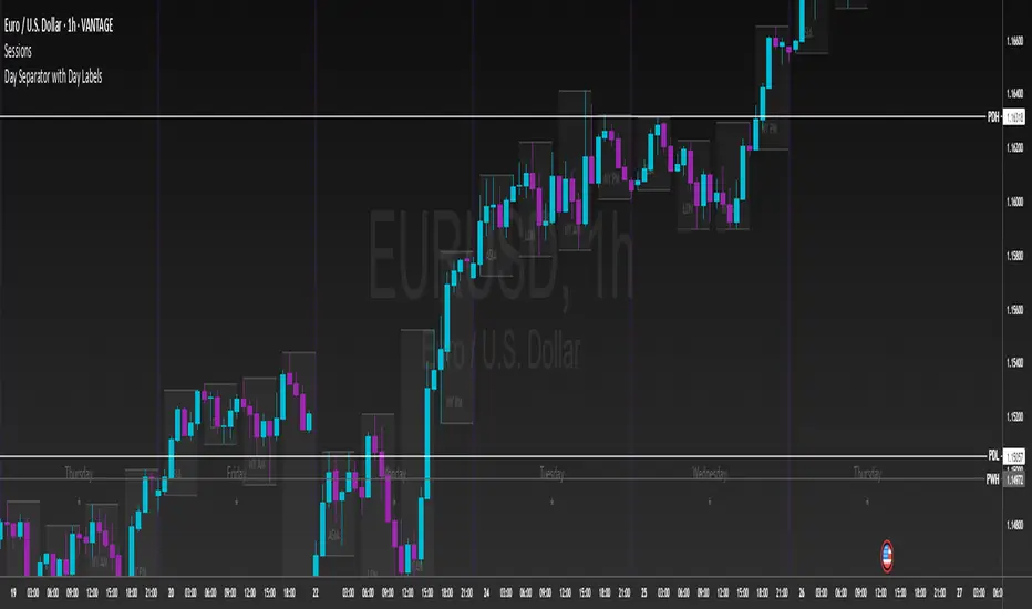 Adjustable day separator that paints vertical lines through the start of day. Default set to GMT however totally customisable.