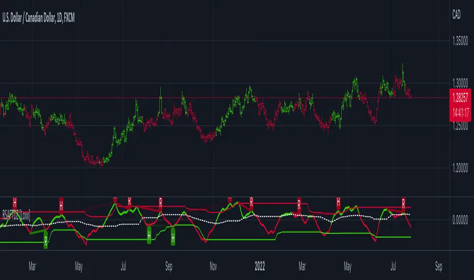 The full name of this indicator is R-Squared Adaptive Fisher Transform w/ Dynamic Zones and Divergences. This is an R-squared adaptive Fisher transform with adjustable dynamic zones, signals, alerts, and divergences.
