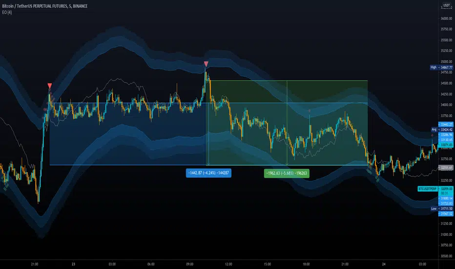 This indicator will show the "tension" points on the market, possible turning points, and reversals. It's possible to change how much elasticity the indicator will filter. Another parameter is to show all the times the candle's high/low value touches the bands. There are three bands. It can work as a region for entering the signals and possible exit points.