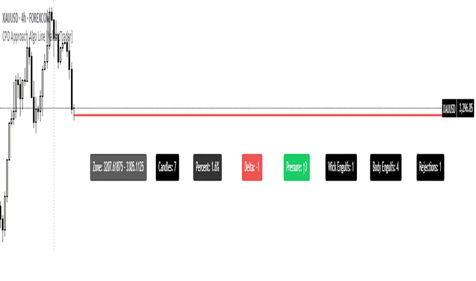 The indicator performs a "Candle Price Distribution" (CPD) analysis by: